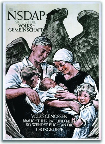 Imagem da família tradicional amparada pela águia do Reich, propaganda da época.